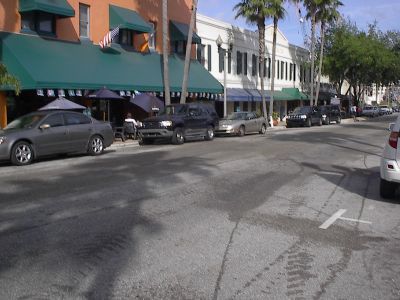 Clematis Street Historic Commercial District, Distrito comercial histórico en Downtown West Palm Beach, Florida.