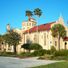 La Iglesia del Espíritu Santo en 1099 Hesperides Road presenta arquitectura de Renacimiento Misional con paredes tipo adobe y entradas arqueadas.