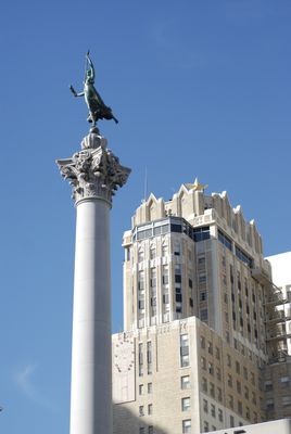 El Monumento Dewey presenta una columna de granito de 24 metros coronada por una estatua de bronce de Nike, la diosa griega de la victoria.