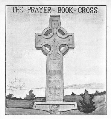 El monumento presenta arquitectura de cruz celta e inscripciones que registran el primer uso del Libro de Oración Común en la costa del Pacífico en 1579.