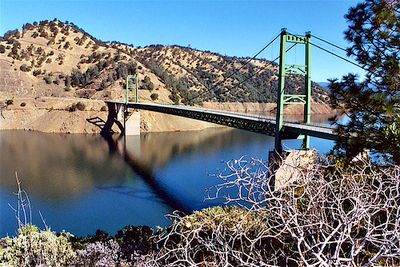 El puente Bidwell Bar se extiende 338 metros sobre el lago Oroville mediante una construcción con cables de acero.
