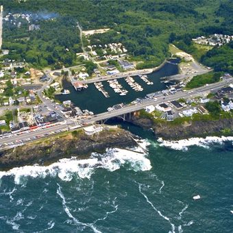 Depoe Bay es una ciudad costera en el Océano Pacífico con un malecón que atraviesa el centro, proporcionando acceso directo a actividades marinas. El puerto está rodeado de acantilados rocosos y sirve como punto de salida para tours de avistamiento de ballenas durante todo el año.
