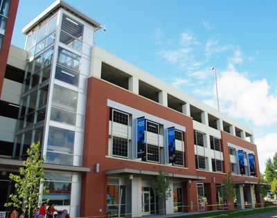 Portland Community College ocupa el espacio comercial de la planta baja, estableciendo una presencia educativa en este centro de transporte.