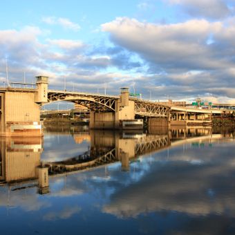 Los carriles dedicados en el Puente Morrison permiten el paso de vehículos, ciclistas y peatones, mientras su mecanismo basculante facilita el paso fluvial.