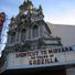 El Teatro Hollywood se encuentra en una esquina destacada del Bulevar Sandy, presentando un diseño arquitectónico colonial español con elementos decorativos en su fachada.