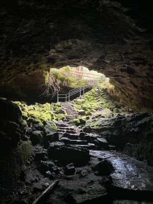 La Cueva Ape se extiende más de tres kilómetros bajo tierra, con paredes lisas formadas por antiguos flujos de lava y temperatura constante de 6 grados centígrados.