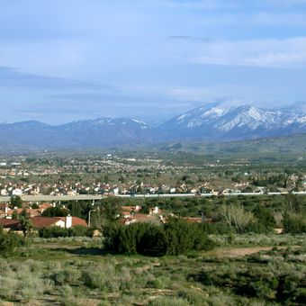 El Acueducto de California atraviesa la zona, aportando agua para agricultura y barrios residenciales. El acceso a la ciudad sigue autopistas principales que conectan la región desértica con los condados circundantes.
