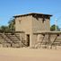 La estructura de adobe se extiende 150 pies en cada lado con dos bastiones y conserva secciones originales del muro este y torre sureste.