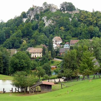 El Château de Ferrette medieval se encuentra en terreno elevado sobre el pueblo y ofrece vistas de las colinas y valles circundantes de la Alta Alsacia.