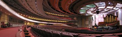 El edificio alberga un órgano Schoenstein de 7.708 tubos y sirve como espacio para las actuaciones del Coro del Tabernáculo durante las conferencias.