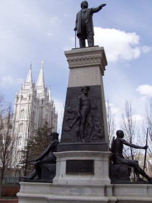 Monumento a Brigham Young, Escultura de bronce en Main y South Temple Streets, Salt Lake City, Estados Unidos.