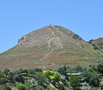 El sendero de 1.8 kilómetros comienza detrás del estacionamiento de una iglesia SUD en Ensign Vista Drive y requiere llevar agua.
