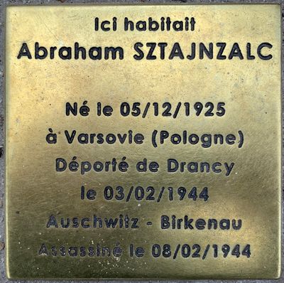 Stolperstein en memoria de Abraham Sztajnzalc, stolperstein à Fontenay-sous-Bois, France