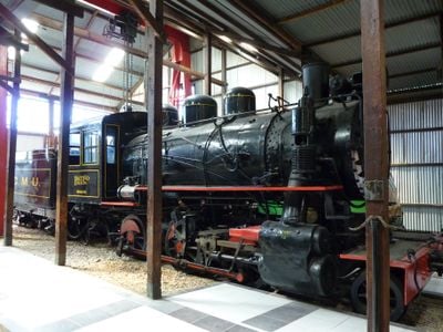 El museo exhibe una colección amplia de locomotoras, vagones de pasajeros y equipos ferroviarios en el antiguo depósito FCMU de Machacamarca.