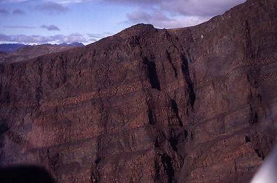 El acantilado contiene más de 10 unidades de flujo de basalto, formando parte de la extensa Provincia Ígnea del Alto Ártico.