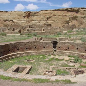 Chaco Culture National Historical Park es un parque histórico en el noroeste de Nuevo México que conserva antiguos complejos de piedra en el desierto. Las ruinas muestran bloques residenciales de varios pisos, cámaras ceremoniales redondas llamadas kivas y caminos de conexión que se extienden por el terreno seco.