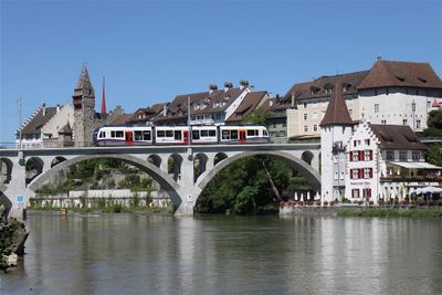 Bremgarten railroad bridge, railway bridge over the river Reuss in Bremgarten in the canton of Aargau, Switzerland