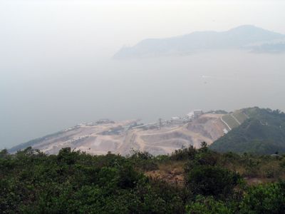 La cantera Shek O ocupa 45 hectáreas en el lado occidental de la península D'Aguilar, suministrando materiales rocosos para la industria de la construcción.