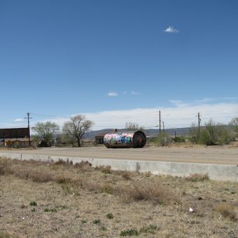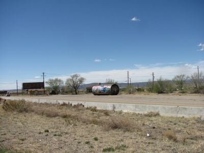 El puesto comercial se encuentra entre Albuquerque y Santa Fe junto a la Interestatal 25, con un tanque metálico de temas pintados y un Monumento del Batallón Mormón.