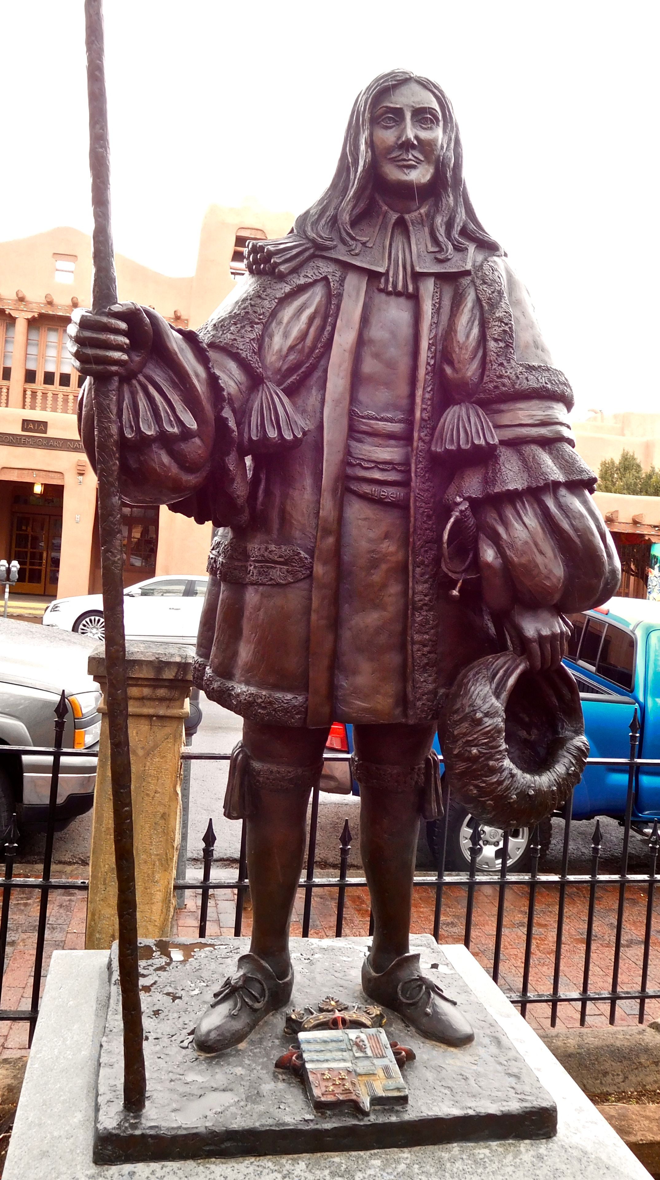 Creada por la escultora Donna Quasthoff en 2007, la estatua representa al conquistador español que dirigió la recuperación de Santa Fe.