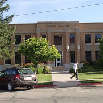 El Condado de Grand se extiende por 9.540 kilómetros cuadrados de formaciones rocosas rojas, incluyendo secciones de los valles del Río Colorado y Río Verde.