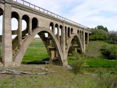 Construido en 1915 por la compañía Chicago, Milwaukee, St. Paul and Pacific Railroad, este puente de arco de hormigón reemplazó una estructura anterior de madera.