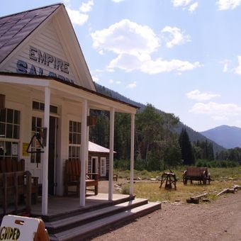 El asentamiento conserva edificios de los años 1800, incluyendo una escuela restaurada, el Salón Empire y varias cabañas privadas a lo largo de una calle principal.