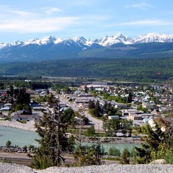 El asentamiento surgió en la década de 1880 con la construcción del Ferrocarril Canadiense del Pacífico y se incorporó formalmente como pueblo en 1957. El transporte de madera y minerales marcó la economía temprana antes de que el turismo ganara importancia en la segunda mitad del siglo XX.