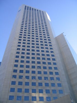 El diseño del edificio incluía planes para una torre gemela de 64 pisos, pero las condiciones económicas impidieron su construcción.