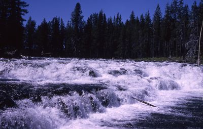 Las cataratas Bechler caen 4.6 metros a través de un canal estrecho de piedra, generando un flujo continuo de agua blanca.
