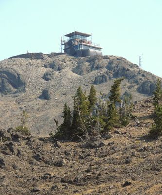 La torre de vigilancia contra incendios en la cima contiene exposiciones interpretativas que explican las características naturales de la región.
