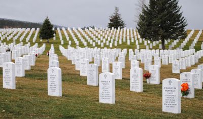 El Cementerio Nacional de Black Hills se extiende por una amplia zona con hileras de lápidas blancas que señalan el lugar de descanso de veteranos militares.