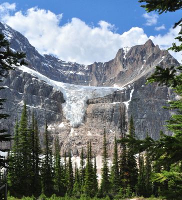 El Angel Glacier es una formación de hielo en la cara norte del Mount Edith Cavell que se extiende sobre la ladera en forma de alas. La masa de hielo desciende desde las pendientes superiores y puede observarse desde varios puntos dentro del parque.