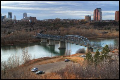 El puente Dawson se extiende 236.5 metros sobre el río North Saskatchewan, uniendo Forest Heights con Riverdale mediante dos carriles y senderos peatonales.