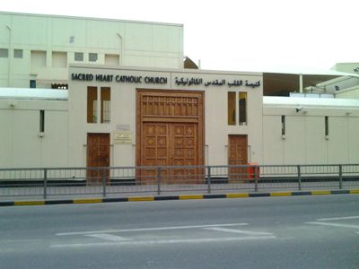 La Iglesia del Sagrado Corazón funciona como una de las dos iglesias católicas en Baréin, sirviendo a aproximadamente 140.000 feligreses.
