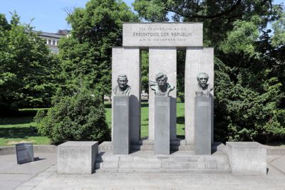 El Republicadenkmal muestra tres bustos de bronce de socialdemócratas sobre pedestales frente a bloques de granito altos en Dr.-Karl-Renner-Ring. Los nombres Jakob Reumann, Victor Adler y Ferdinand Hanusch están tallados en la estructura de piedra.