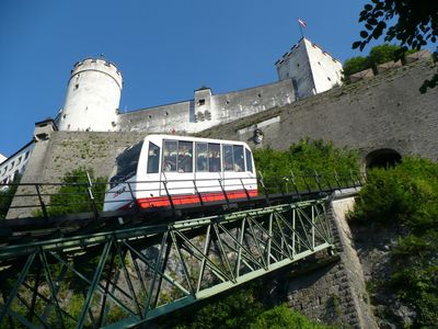Festungsbahn es una línea de cremallera en Salzburgo que lleva a los visitantes desde el casco antiguo hasta la Fortaleza de Hohensalzburg, cubriendo aproximadamente 200 metros de terreno empinado. El diseño de vía única incluye una sección de cruce en el medio donde los dos vagones pueden pasar uno al lado del otro.
