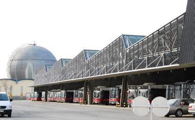 Betriebsgarage Leopoldau, Cochera de autobuses en el distrito Floridsdorf, Viena, Austria.