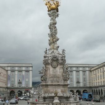 La Columna de la Trinidad es un monumento barroco de mármol blanco de Untersberger que se eleva en el centro de la Hauptplatz con unos 20 metros de altura. El monumento presenta un grupo de figuras doradas en su parte superior con la Inmaculada sobre una media luna, decorado con ángeles sentados en nubes.