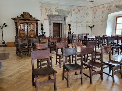 Las salas con decoraciones del siglo 16 muestran patrones ornamentales propios de la época. Los espacios reflejan cómo los cambios religiosos de la región quedaron plasmados en la arquitectura y las colecciones que se conservan.