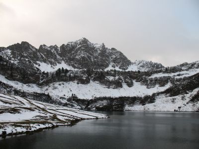Lachenspitze se eleva hasta los 2126 metros en los Alpes de Allgäu, con una pared norte y varios senderos de escalada en formaciones dolomíticas.