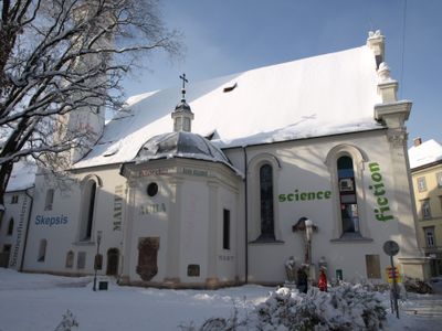 La iglesia presenta una fachada neorrenacentista de 1876, diseñada por August Ortwein, con modificaciones barrocas interiores del siglo XVIII.