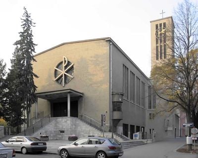 Construida entre 1935 y 1936 durante el régimen político austriaco, esta iglesia fue diseñada por Josef Vytiska para el mayor complejo residencial municipal.