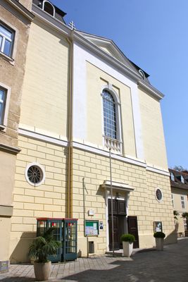 La iglesia se remonta al siglo 13, cuando fue mencionada por primera vez en documentos de la Abadía de Heiligenkreuz. Fue reconstruida después del gran incendio de Baden en 1812 y adquirió su forma actual entre 1825 y 1826.