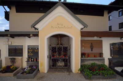 Friedhofsummauerung mit Nischenbildstöcken und Wirtschaftsgebäude, cemetery wall in Westendorf, Tyrol, Austria
