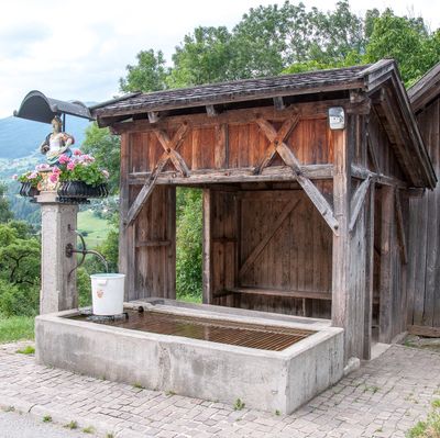 Floriansbrunnen in Oberwaldried, Brunnen in Arzl im Pitztal (13684)