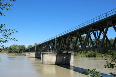 El puente ferroviario, inaugurado el 1 de junio de 1871, fue reconstruido después de la Segunda Guerra Mundial tras su destrucción parcial en 1945.