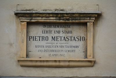 Gedenktafel für Pietro Metastasio, Gedenktafel am Gebäude Kohlmarkt 11, Wien Innere Stadt