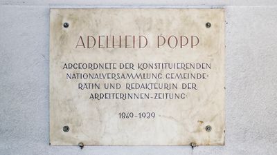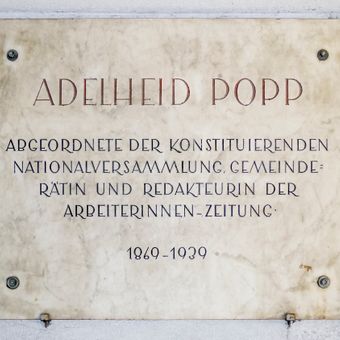 Gedenktafel Adelheid Popp, Gedenktafel am Adelheid-Popp-Hof, Wien Ottakring