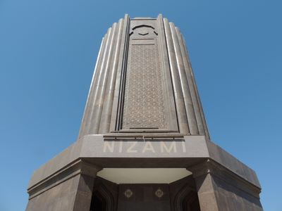 El mausoleo, construido en 1947, alberga los restos de Nizami Ganjavi, un poeta persa que vivió entre 1141 y 1209 en Ganja.